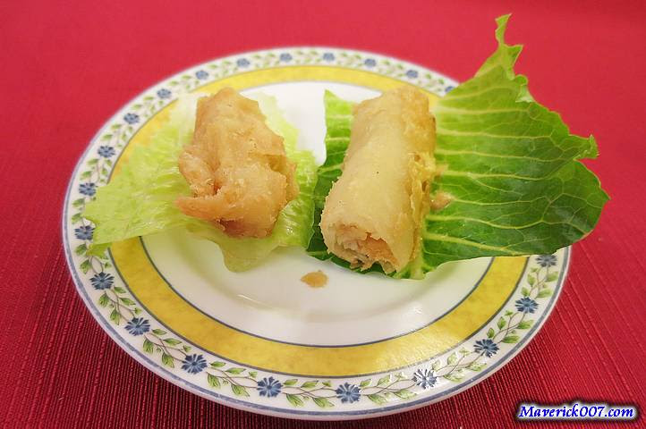 蝦卷沾點黃芥末用生菜捲來吃