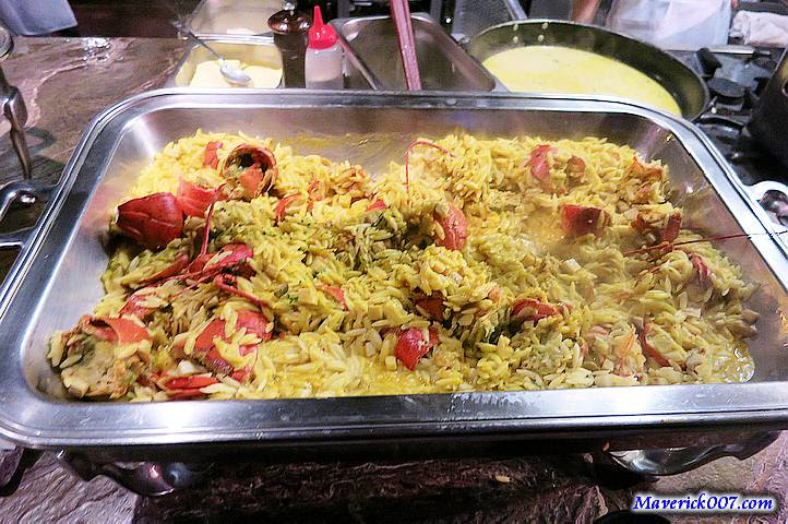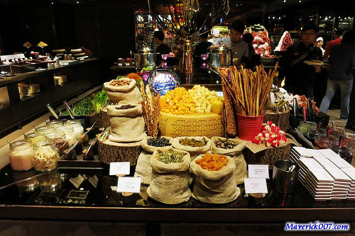 有個中島的起士堅果、沙拉、海鮮區