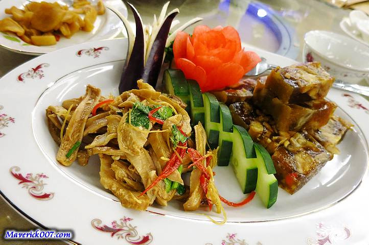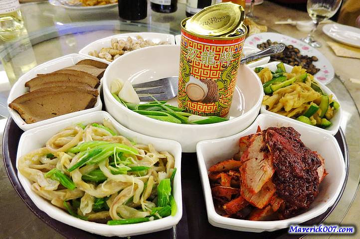 鹹酥烏魚腱、沙茶鴨掌、紅糟鵝肉、龍膜芹菜、五香粉干