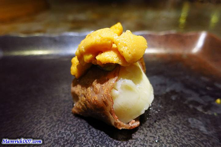 【海膽牛肉干貝捲】