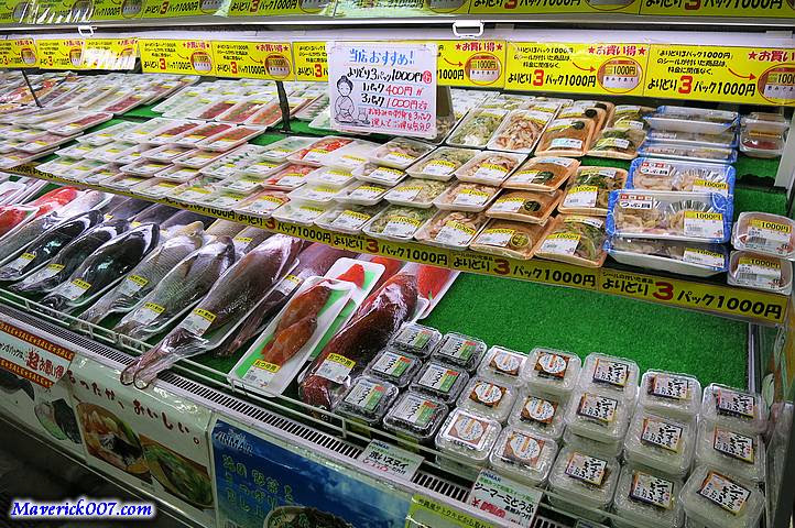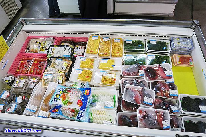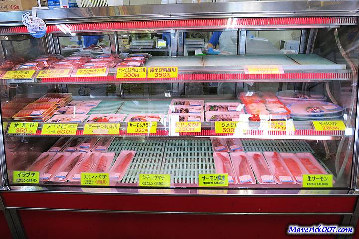 有許多冷凍冷藏魚貨以及整尾整尾賣的魚
