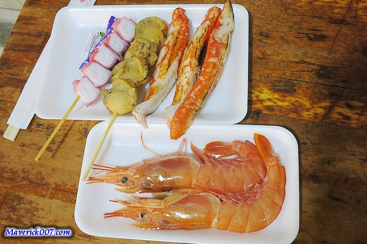 上面章魚腳、烤貝與蟹味棒(蒲鉾)與兩隻赤蝦1650¥