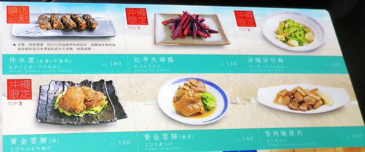 飲料那一面有許多沖繩料理的小菜可以點